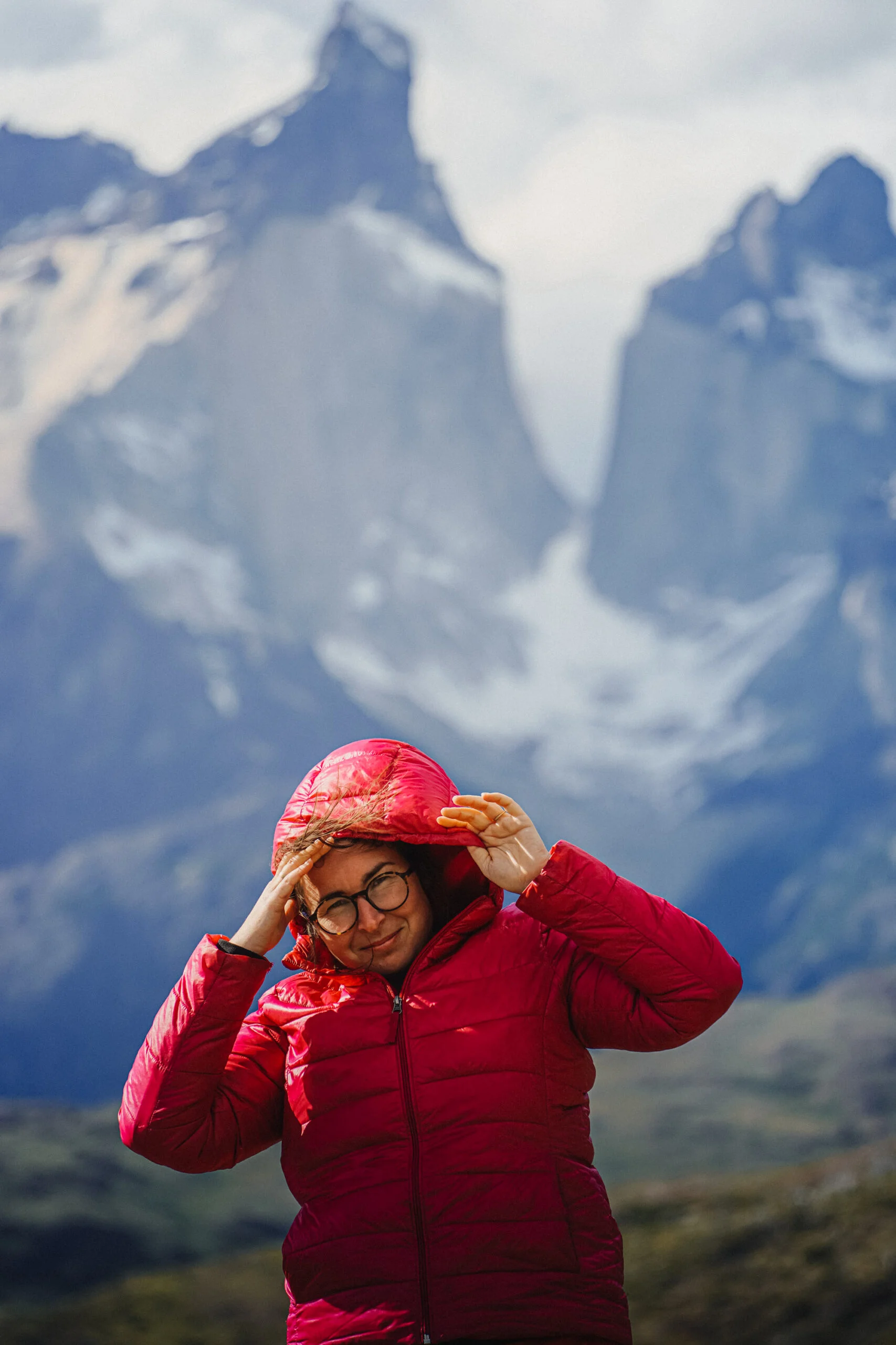Wiatr miał jednak tę zaletę, że przedmuchał nam wszystkie chmury, tak że moglismy zobaczyć szczyty Torres del Paine w pełnej krasie. I zostawić tam serce!